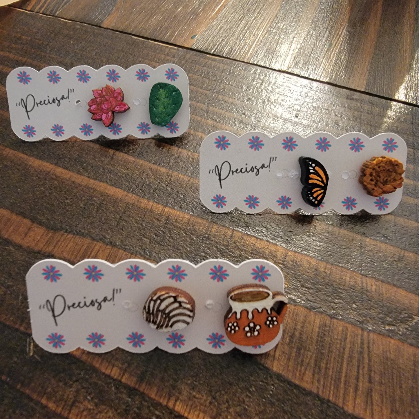 Small in size, but big in cultura! These Chiquitas are tiny tributes to all things we love about Mexican life—pan dulce, barro mugs, monarch butterflies, blooming cacti, and more. Perfect for mixing, matching, or gifting, each pair tells its own sweet story with color, charm, and cariño. They're also perfect to match with your own Chiquita!