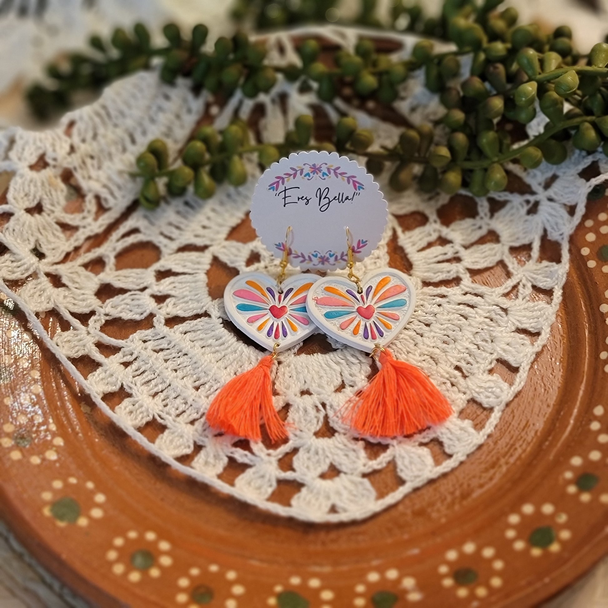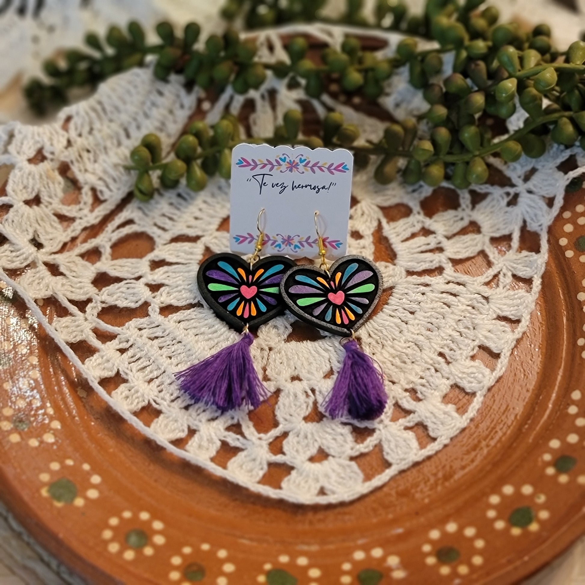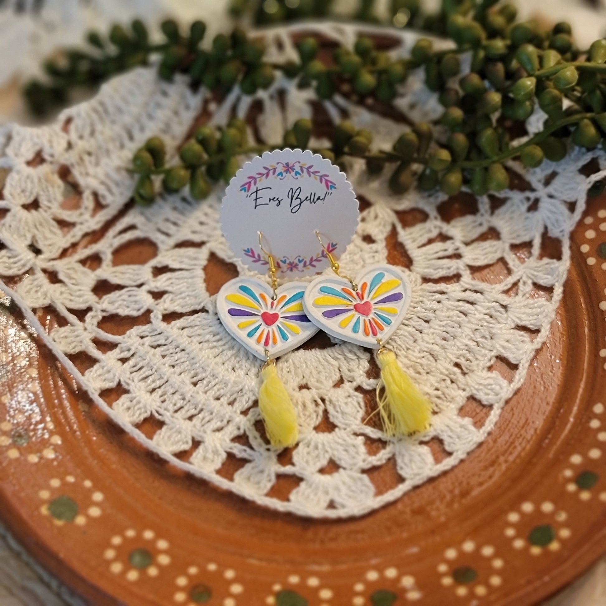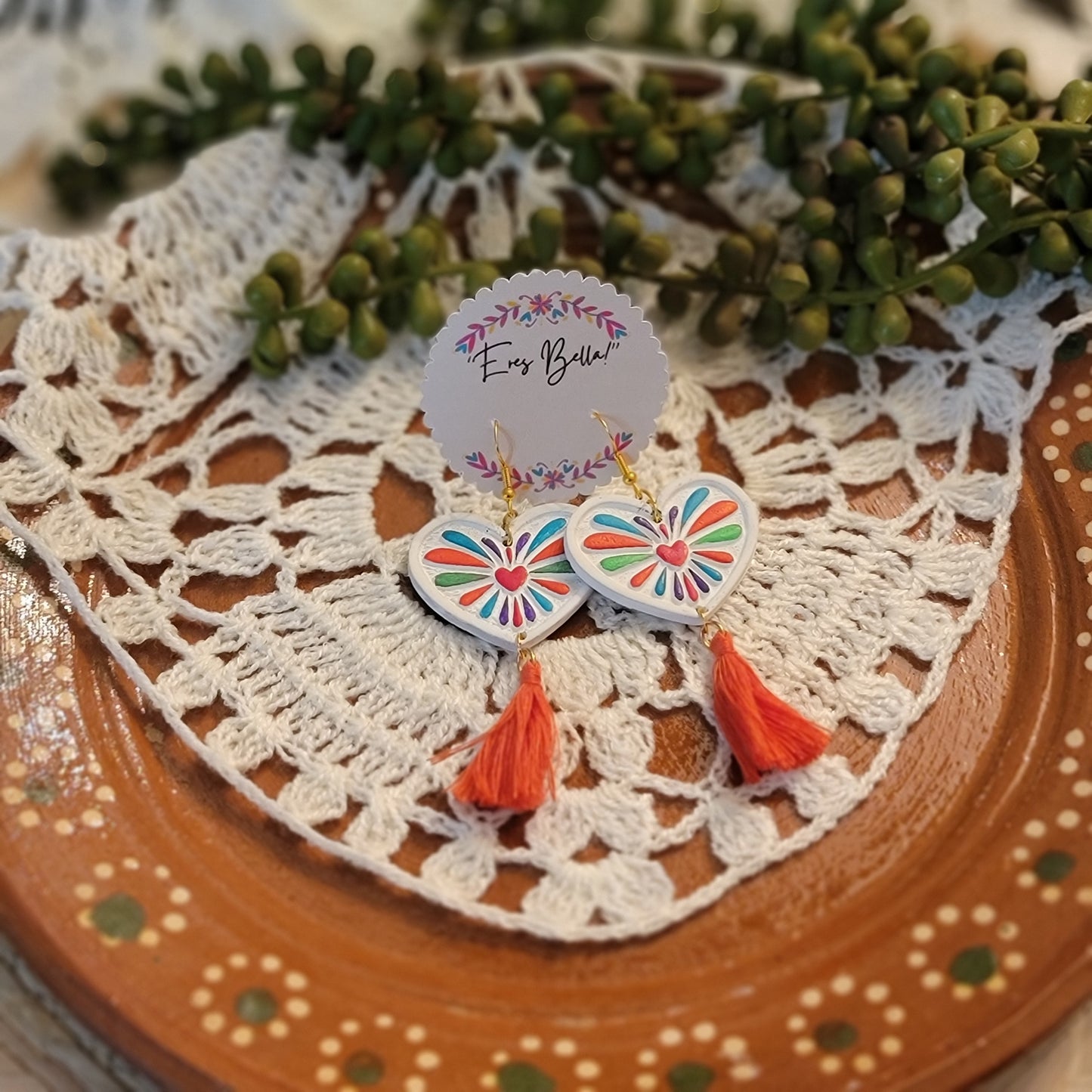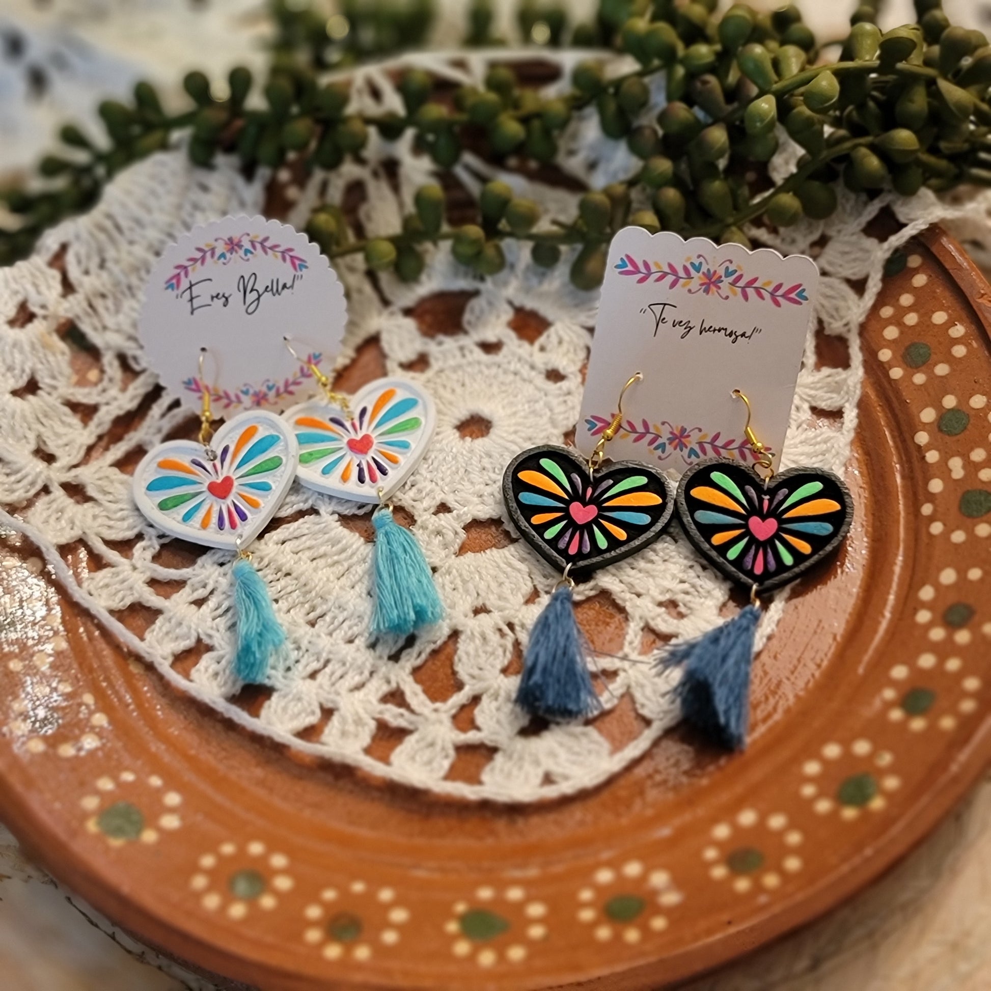 These vibrant heart earrings with colorful florals and playful tassels are a celebration of Mexican folk art at its finest. Available in bright white or bold black, they’re light enough for daily wear but bold enough to turn heads. From mercados to brunch dates, your ears will be the life of the party.