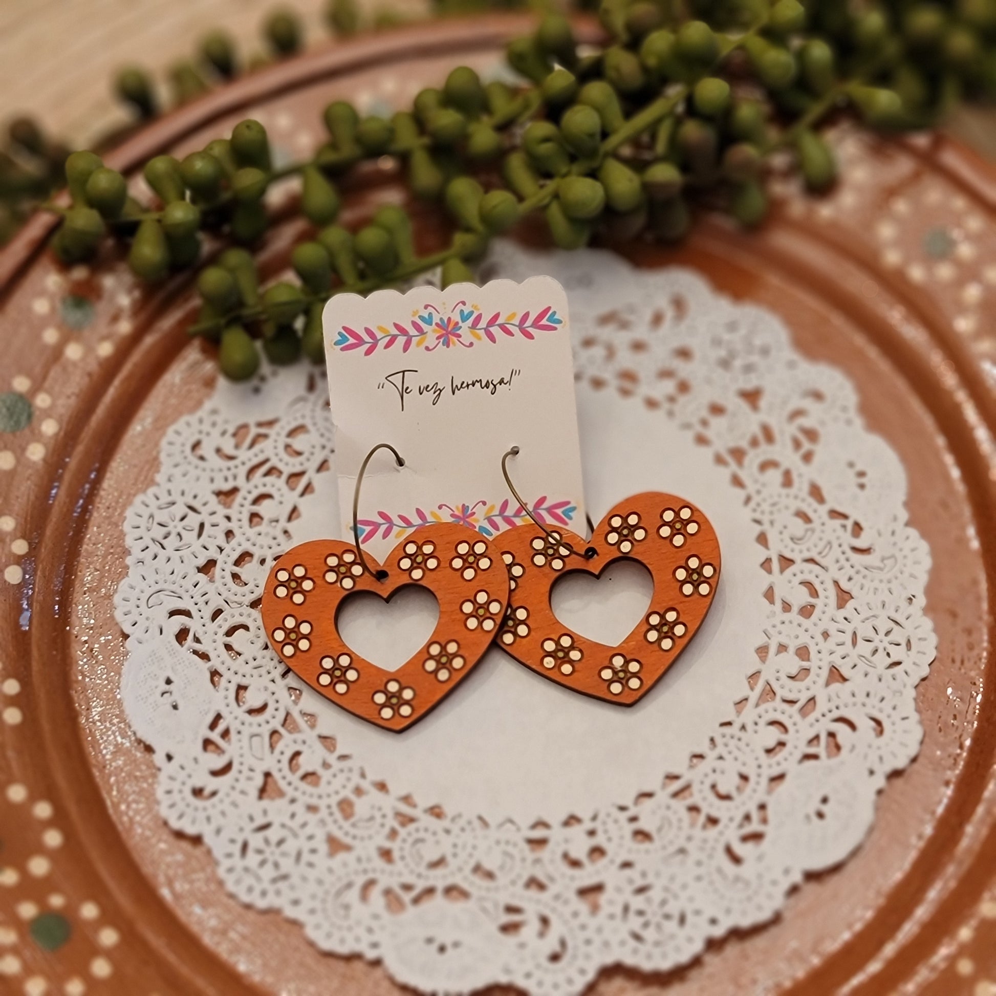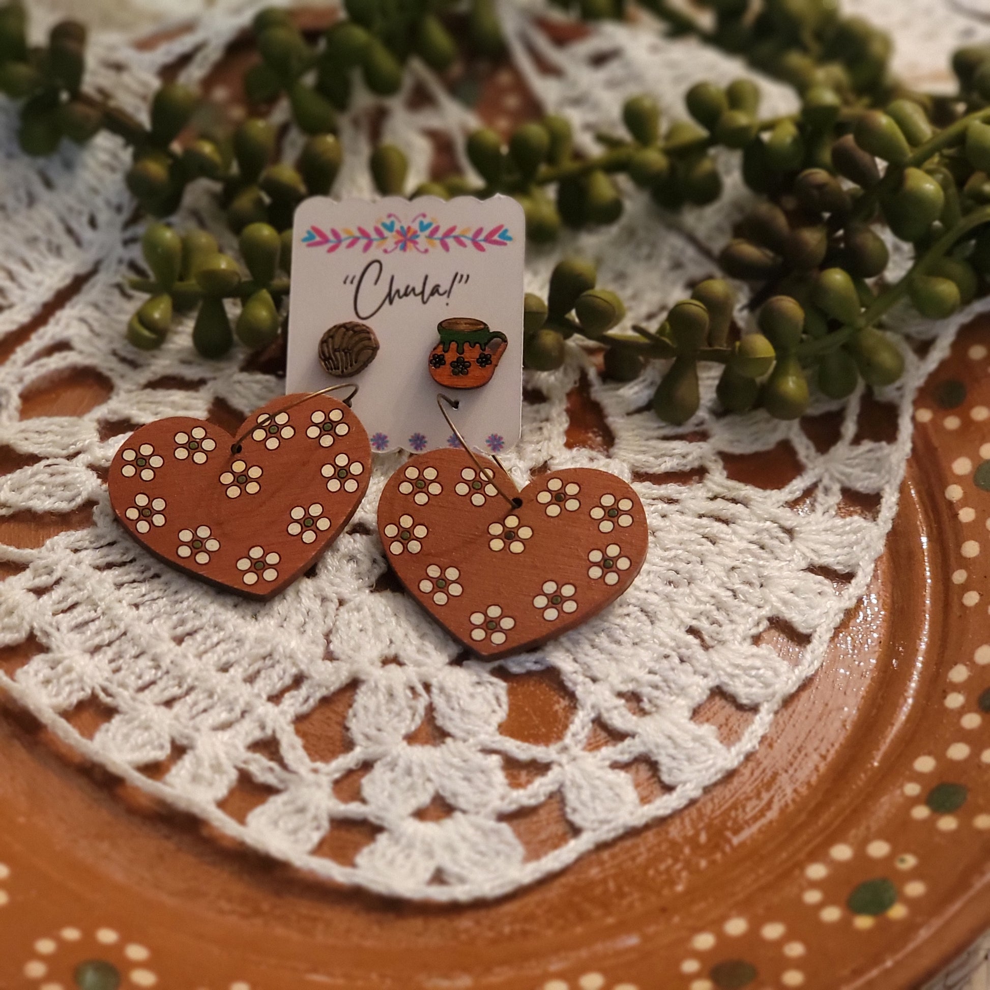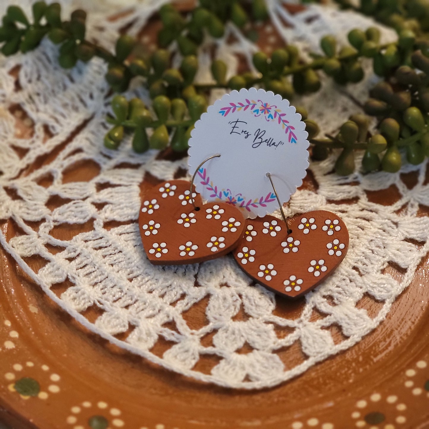 Celebrate love and tradition with these beautifully detailed heart-shaped earrings inspired by Mexican terracotta pottery. Lightweight and earthy with delicate floral cutouts, these earrings are perfect for adding a handcrafted touch to any look.