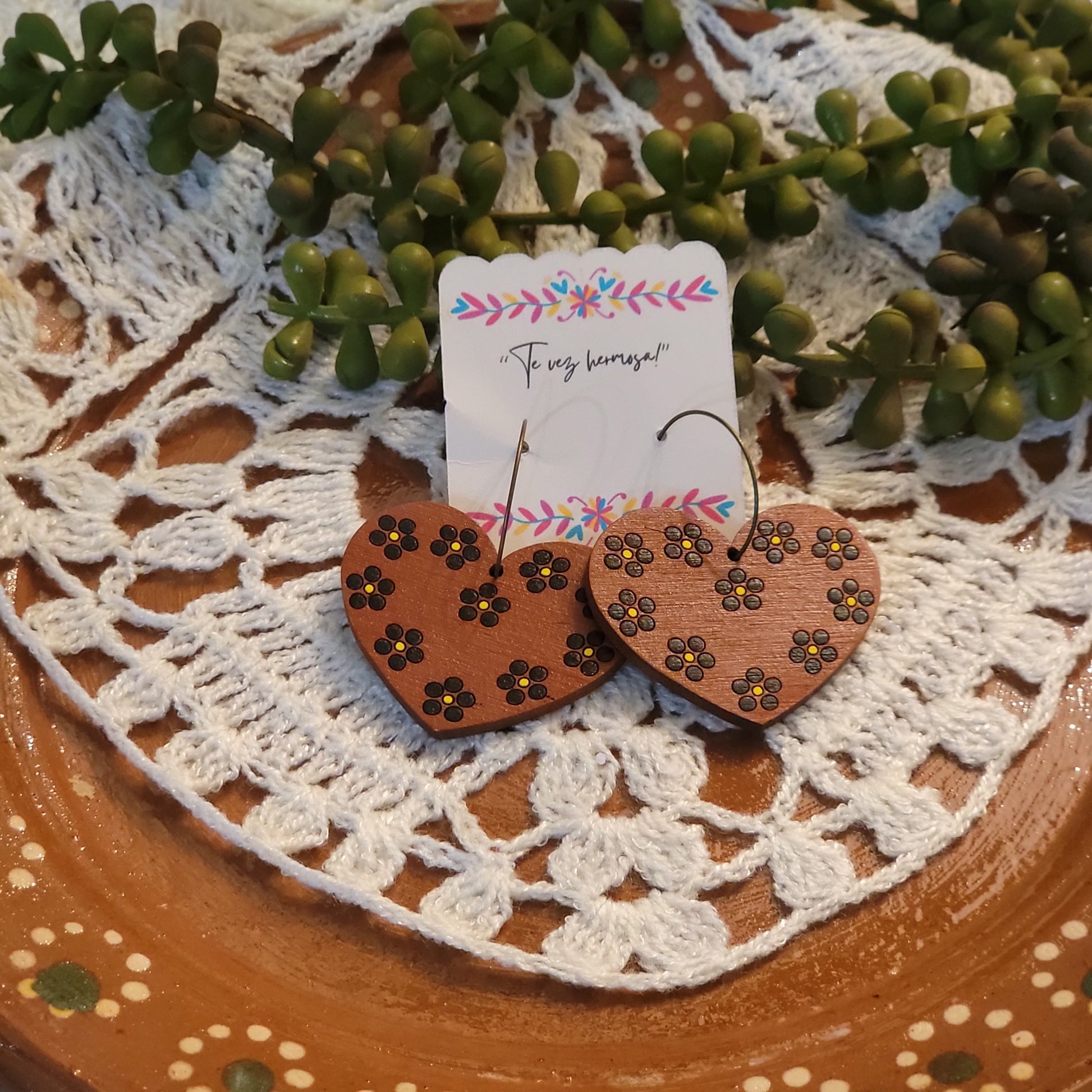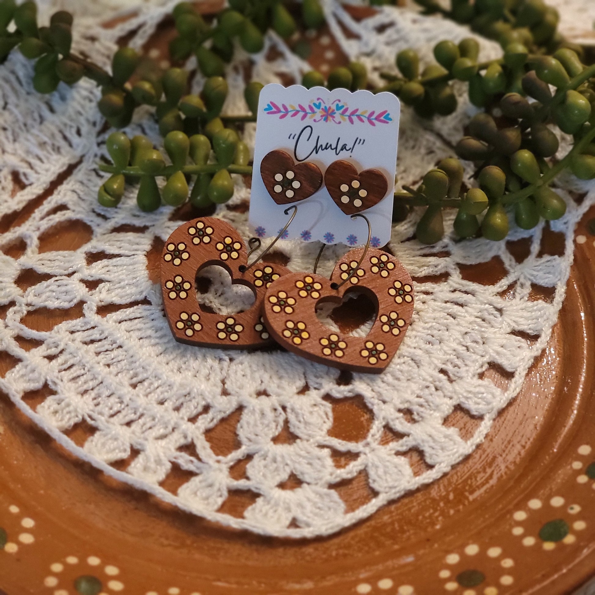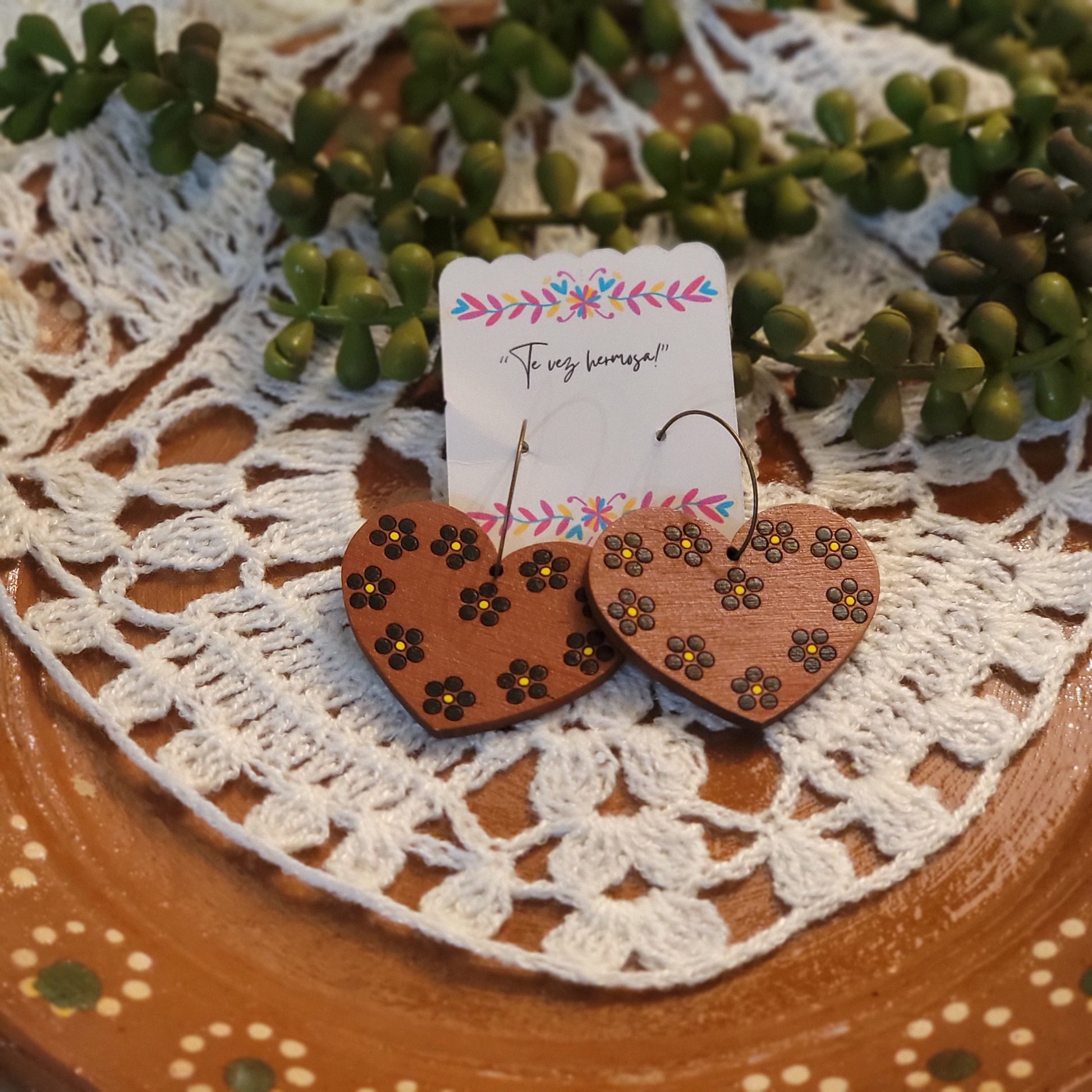 Celebrate love and tradition with these beautifully detailed heart-shaped earrings inspired by Mexican terracotta pottery. Lightweight and earthy with delicate floral cutouts, these earrings are perfect for adding a handcrafted touch to any look.